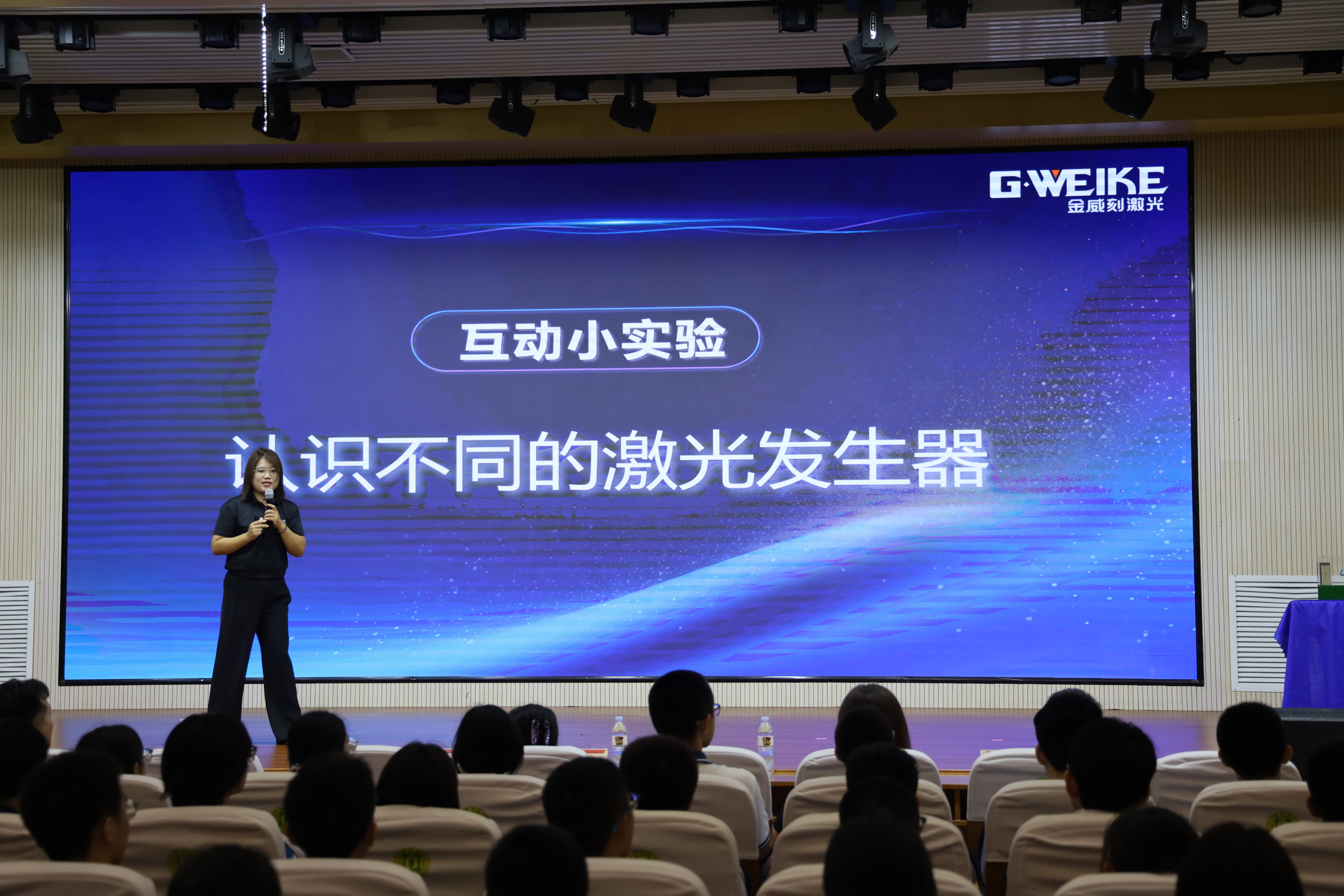 金威刻品牌经理李珊开展激光知识讲座,系统介绍了激光的产生与前沿应用,通过现场互动体验,引导学生利用激光雕刻机试做小工艺品,帮助师生直观感受科技与艺术创作结合的魅力。