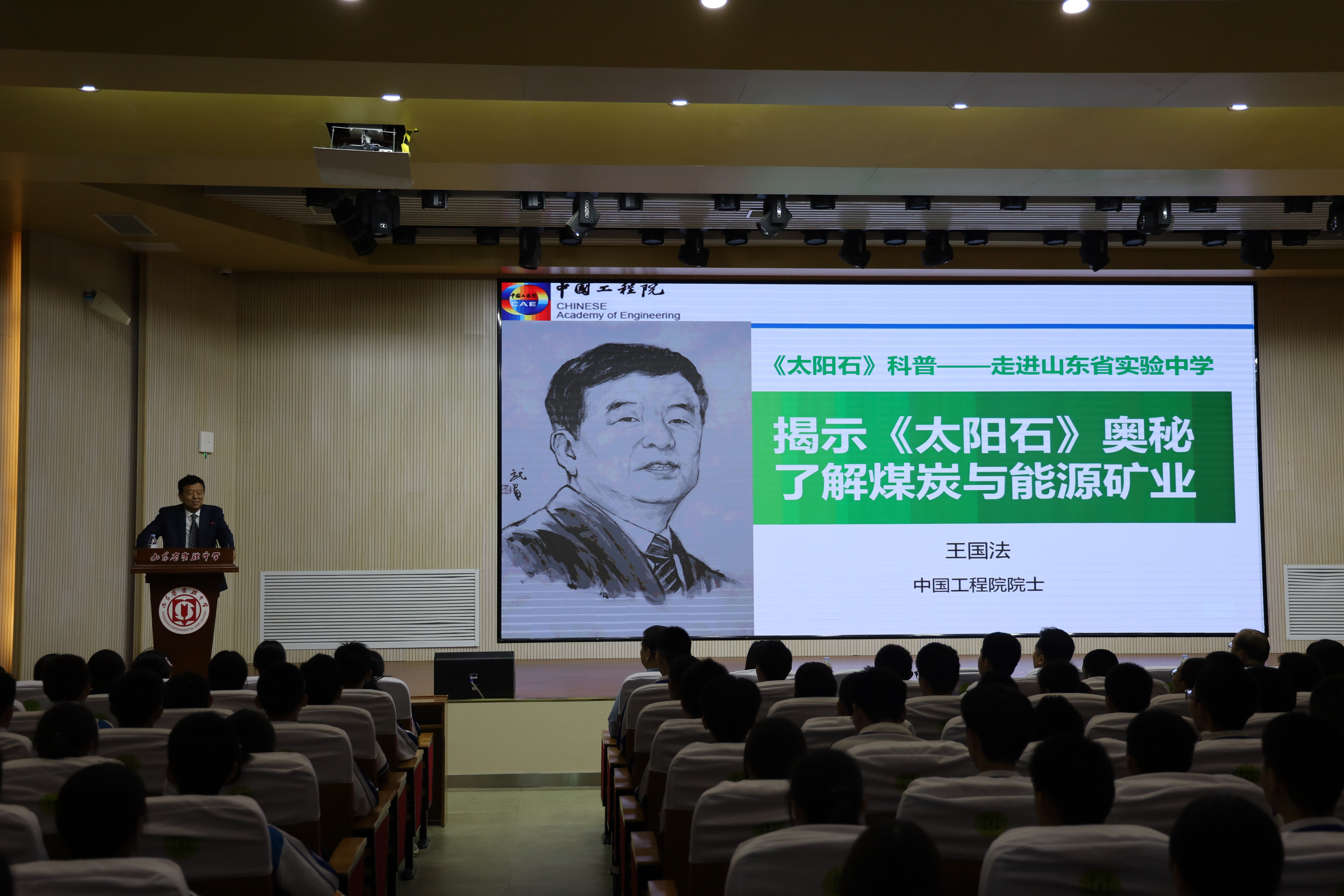 为赋能科学教育、助力学生成长,2025年9月23日下午,中国工程院院士、煤炭开发技术装备与智慧矿山专家王国法做客省实验鸿鹄讲堂,为师生带来《揭示太阳石奥秘,了解煤炭与能源矿业》精彩科普报告。活动由山东省实验中学主办,山东省科协、济南市科协协办,山东省实验中学党委书记方奎明等校领导参与活动,中心校区执行校长于永水主持活动。