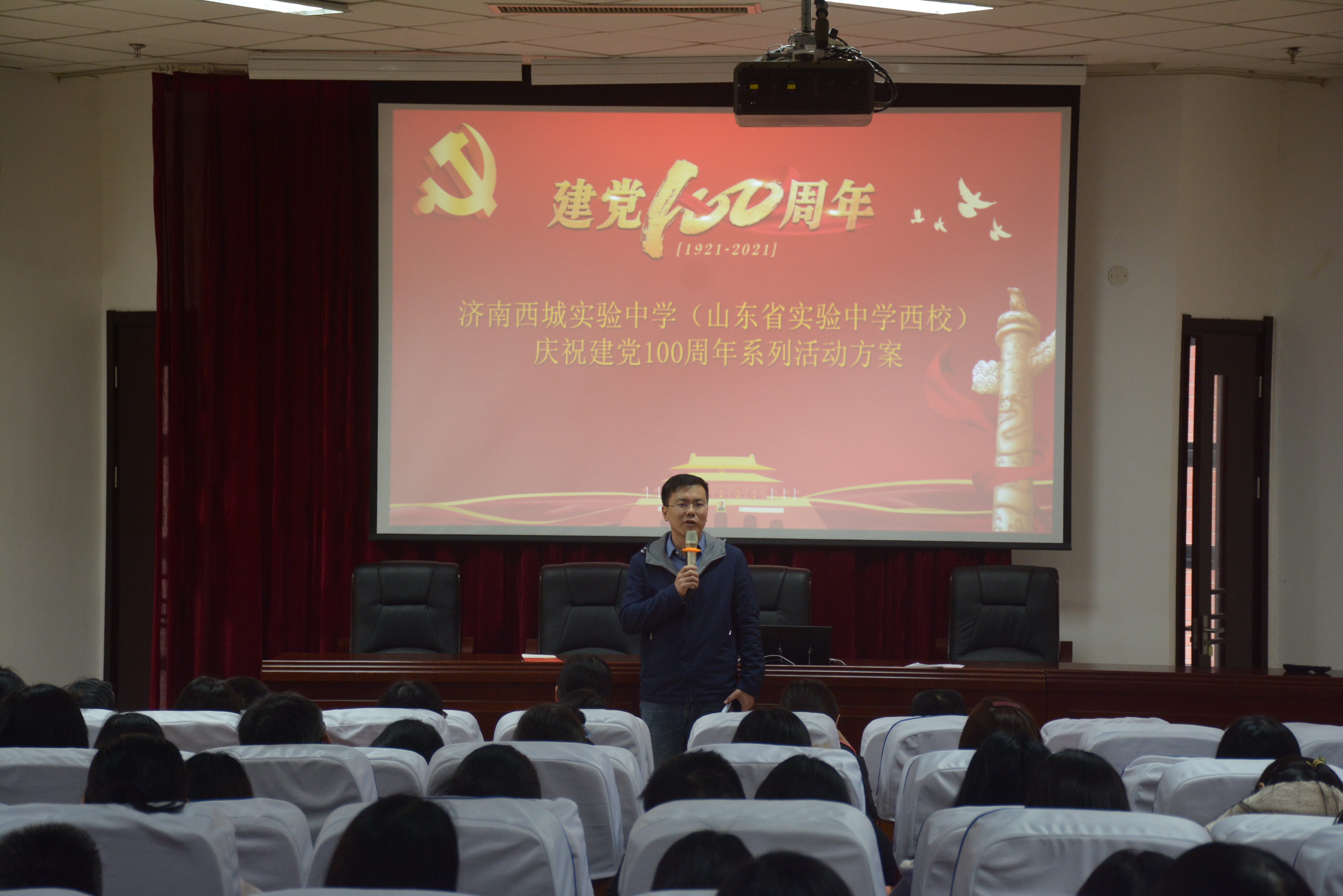 3月18日下午,济南西城实验中学(山东省实验中学西校)在艺术楼第一阶梯教室召开全体党员大会,传达学校党委2021年度党建工作计划,解读学校庆祝建党100周年系列活动方案。会议由学校党政办公室主任、新闻宣传中心主任王怀方主持,学校全体党员参加会议。