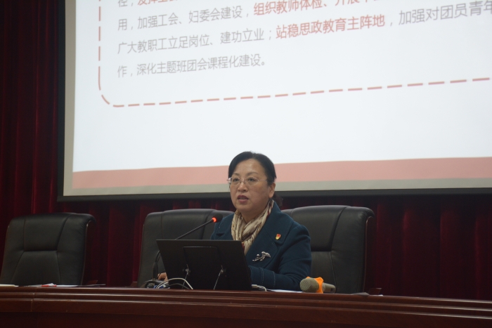 会上,学校党委书记王蕾带领全体党员回顾学校2020年度党建工作基本情况。传达并详细解读学校《2021年党建工作计划要点》,从扎实推进党史学习教育、多维强化思想建设、夯实组织基础、深化党建品牌建设、提高学校治理水平方面作出部署。王蕾书记指出,广大党员教师要聚焦党史、“四史”学习,筑牢理想信念根基;要充分发挥“先锋在线,担当有我”党建品牌引领作用,广泛宣传党的光辉历程、伟大成就和优良传统,把红色记忆、红色传统根植于心中,践行于教育教学实践。