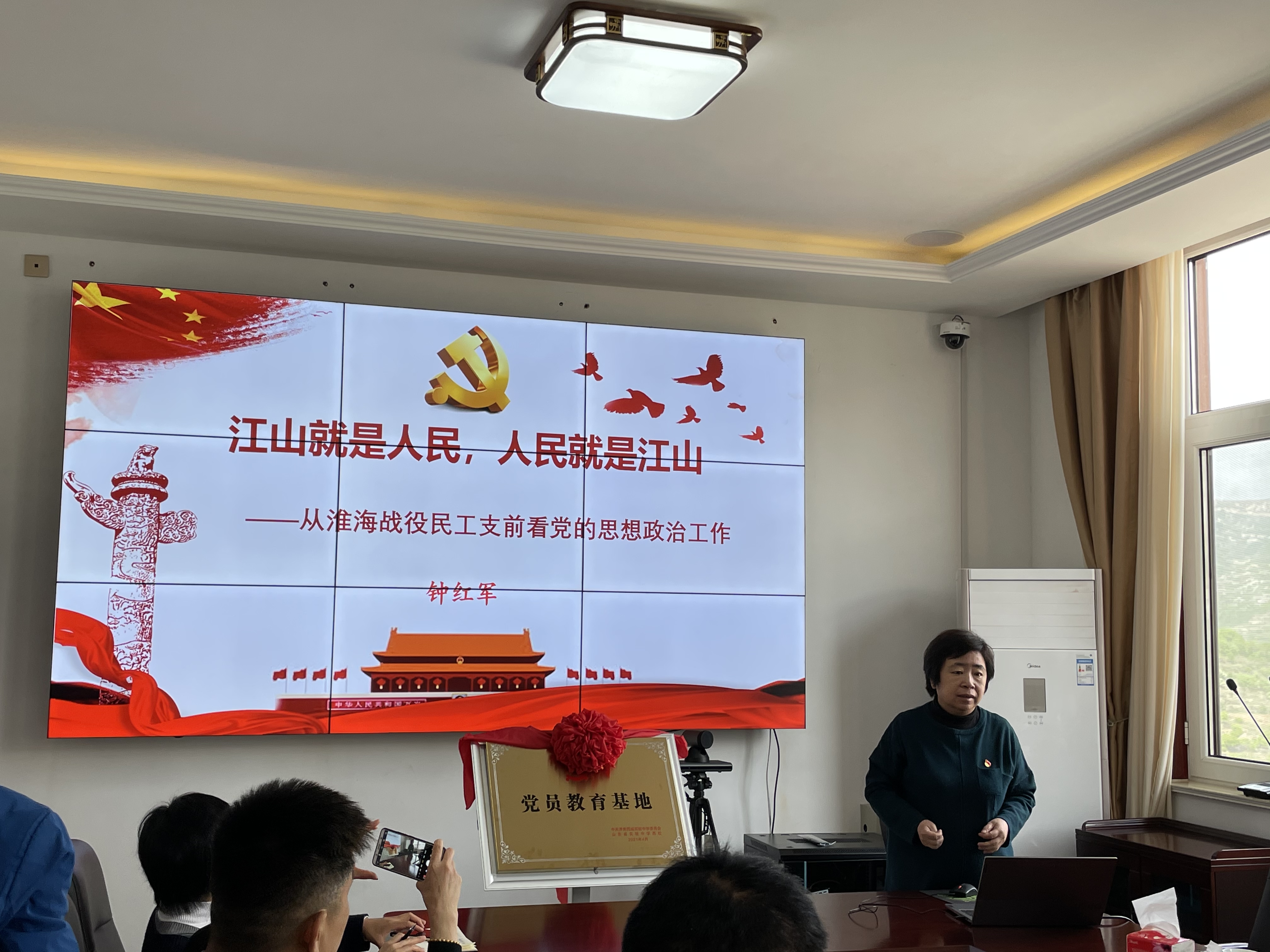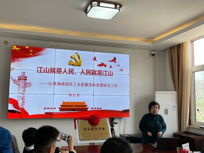 随后,钟红军副校长主讲“校村党建共建——共学党史” 的主题党课《江山就是人民,人民就是江山》。钟校长结合芦南村在新农村建设初期遇到的困难,类比淮海战役中的支前民工故事,讲述了在党的思想教育下支前民工思想上的变化,讲述了组织起来的人民的强大力量。
