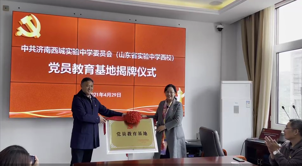2021年4月29日,济南西城实验中学(山东省实验中学西校)首个“党员教育基地”揭牌仪式在历城区港沟镇芦南村举行,我校党委书记王蕾和港沟街道芦南村党支部书记贾虎平共同为基地揭牌。省委党建派驻组港沟分队队长谢传宏书记,历城区港沟街道党工委副书记程福海,我校党委委员、副校长钟红军、张宏刚,港沟街道教育办主任、港沟中学校长高文宝,我校及芦南村党支部部分党员参加揭牌仪式。