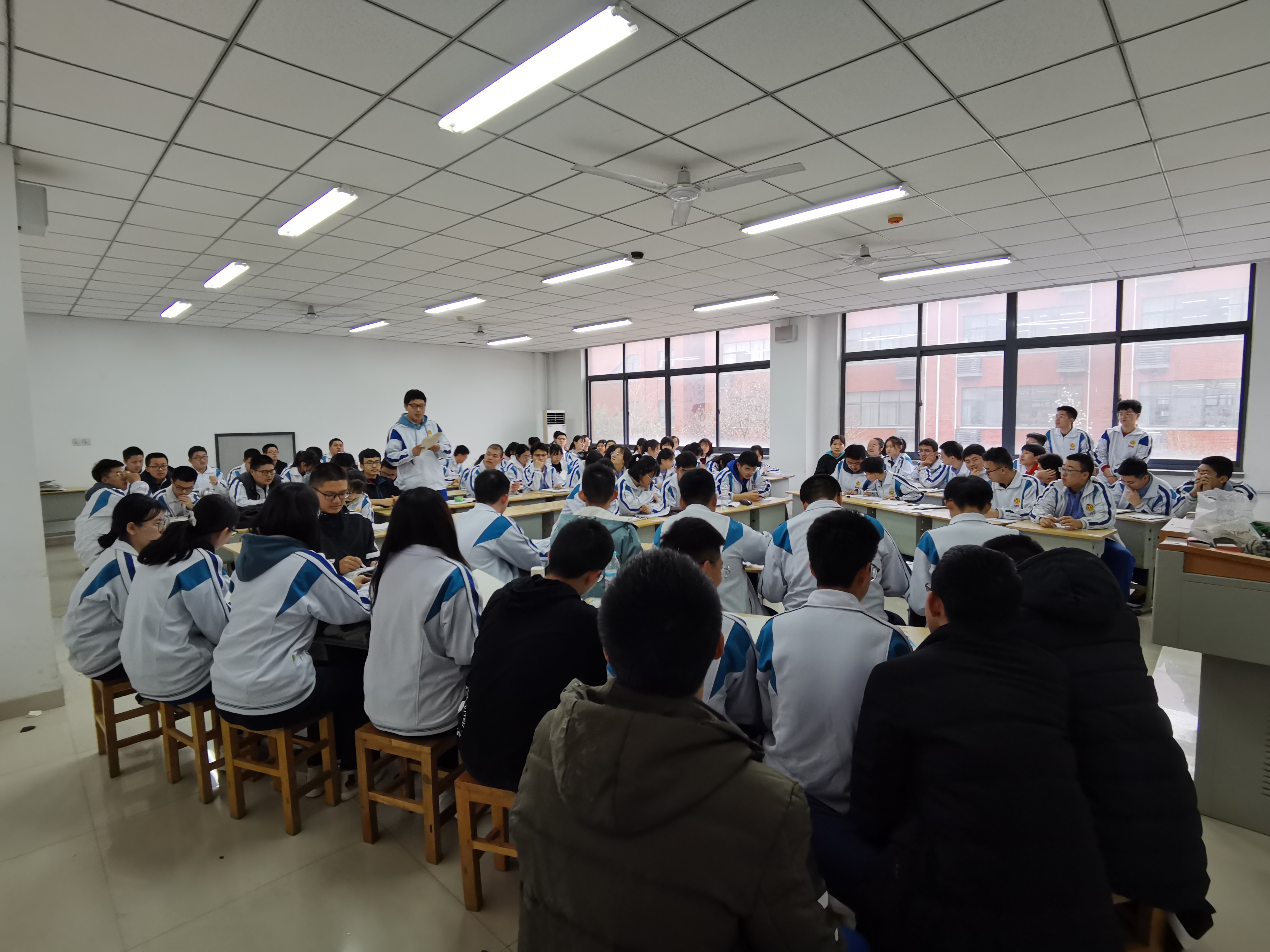 2021年3月6日下午,济南西城实验中学(山东省实验中学西校)第三合堂教室里,上演了一场内容丰富、别开生面的数学求导竞赛。来自高二52、53班的全体同学及他们的数学老师王艳雪、班主任李晓蕾和房晓敏参加了此次竞赛活动。此次活动是数学组“数学主题日”系列主题活动之一。