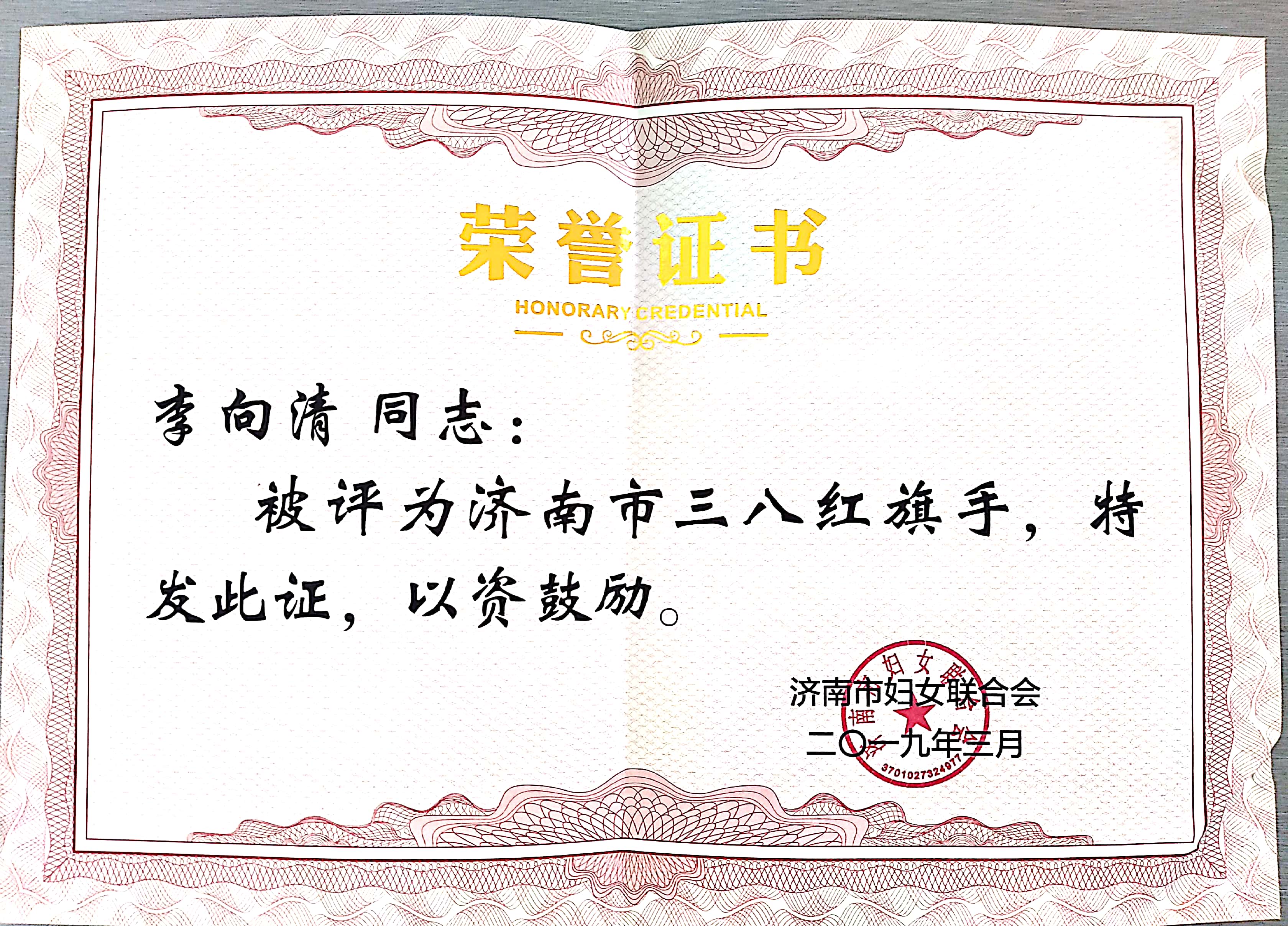 我校李向清老师荣获济南市三八红旗手荣誉称号