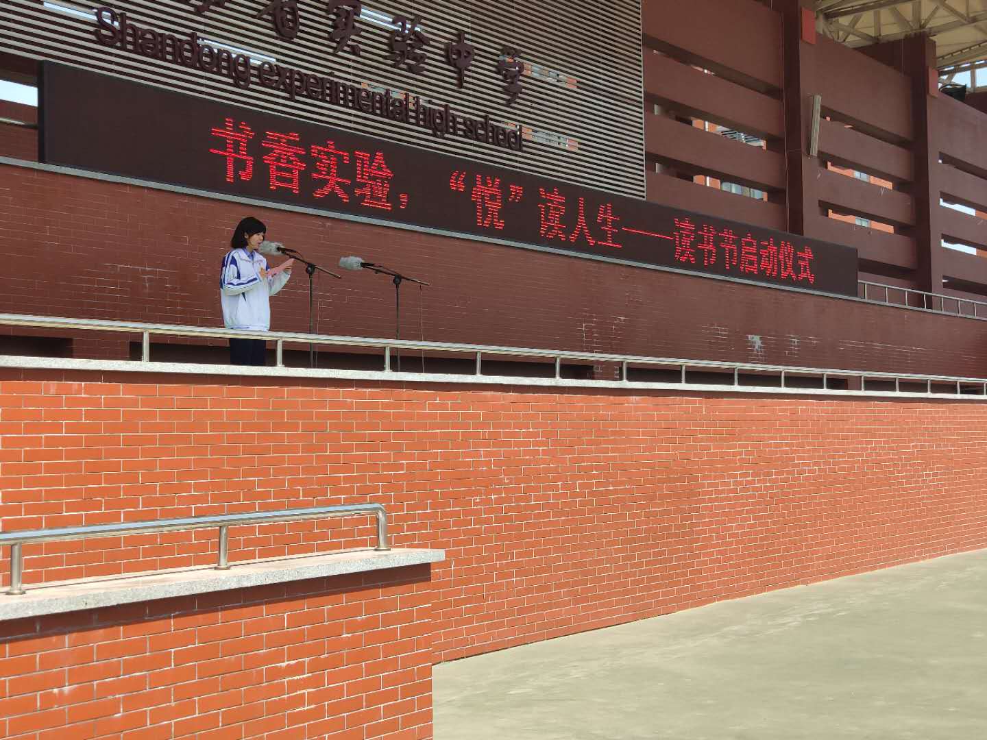 5月6日上午,山东省实验中学西校区举行了以“书香实验,悦读人生”为主题的升旗仪式。仪式由团总支书记张尚洁同学主持,西校区语文教研组组长时均琪老师为读书节启动讲话。