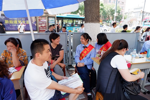6月11日是2019年济南市中考的第一天,山东省实验中学考点迎来了2000余名考生。各校考生在学校带队老师的陪伴下来到省实验考点,自信满满地走进考场,沉着应试。 为确保考试期间各项保障工作到位,为给广大考生和家长营造一个舒心的考试和陪考环境,学校各部门通力协作,为考生和家长做好服务,创造最佳环境。 考点内,各项考务工作都按照流程有条不紊的进行,考务工作人员认真细致做好各项工作。考点外,学校的教师志愿者和学生志愿者积极开展“助力中考,为梦护航”志愿服务活动。 志愿者们一大早就在考点前设置服务岗,搭建遮阳帐篷,准备桌椅,为考生和家长提供了饮用水、防暑用品及应急药品。教师志愿者们为家长提供了高中学法指导和初高中衔接的问题解答,而学生志愿者们也尽己所能,解答家长们对高中生活的各种问题。“作为过来人,我们很明白家长和考生此时的心情,我们也希望通过与家长们分享自己的经验体会,帮助他们缓解焦虑的心情”一位学生志愿者说道。 此次活动也是山东省实验中学学长制又一次生动的体现。自2008年开始,山东省实验中学开始进行学长制的探究,经过十余年的探索和实践,形成了一系列较为完整的学长制运行体系。从新生入校教育到社团活动指导,从学习生活指导到人生规划确定,从学科经验分享到成长经历引领,学长制以其教育引领的实效性和接地气式的影响力,体现于校园生活的方方面面。该举措引起广泛社会反响,《中国德育》、《中国教育报》均进行了专题报道,被评为基础教育国家级教学成果一等奖,成为济南市首张德育名片,2018年作为全国中小学德育工作典型经验被推广。 |