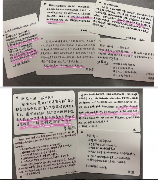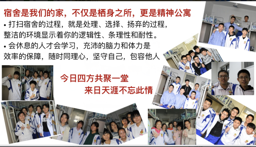 让学生成为班会的主人公,成为宿舍管理的主人公。本次班会流程由班主任孙萌老师精心设计,共分为四个环节:宿舍知识竞答,用比赛的方式同学们重新熟悉学校宿舍管理的规章制度;第二个环节为大家播放了“宿舍那些事儿”的微电影,跟随班主任的镜头为大家展示了你追我赶的宿舍学习,齐心协力的维护宿舍卫生和日常生活里的互相帮助;紧接着,由视频中出现的优秀舍长代表进行经验分享。女生518宿舍的舍长为大家分享了宿舍良好的学风,宿舍内形成了良性竞争的好氛围,在帮助他人的时候毫不吝啬,每个人的自律变成了宿舍其他人学习的动力;女生514宿舍秉承“心中有尺度,心中有大家”的集体意识,在卫生打扫上明细则,正风气,展现了“不以规矩不能成方圆”的宿舍之风。在此之后,学生家长的音频采访,肯定了学校寄宿生活对孩子的成长带来的变化。最后一个环节以学校学长制为切入点,为帮助下届新生更好地适应宿舍生活,发起了”写给新来的你”的经验分享活动,由班主任给大家分享了孩子们写给学弟学妹们的寄语,或分享寄宿制的好处,或对自己的成长变化感慨万千,亦或为新生住宿可能存在的问题答疑解惑。