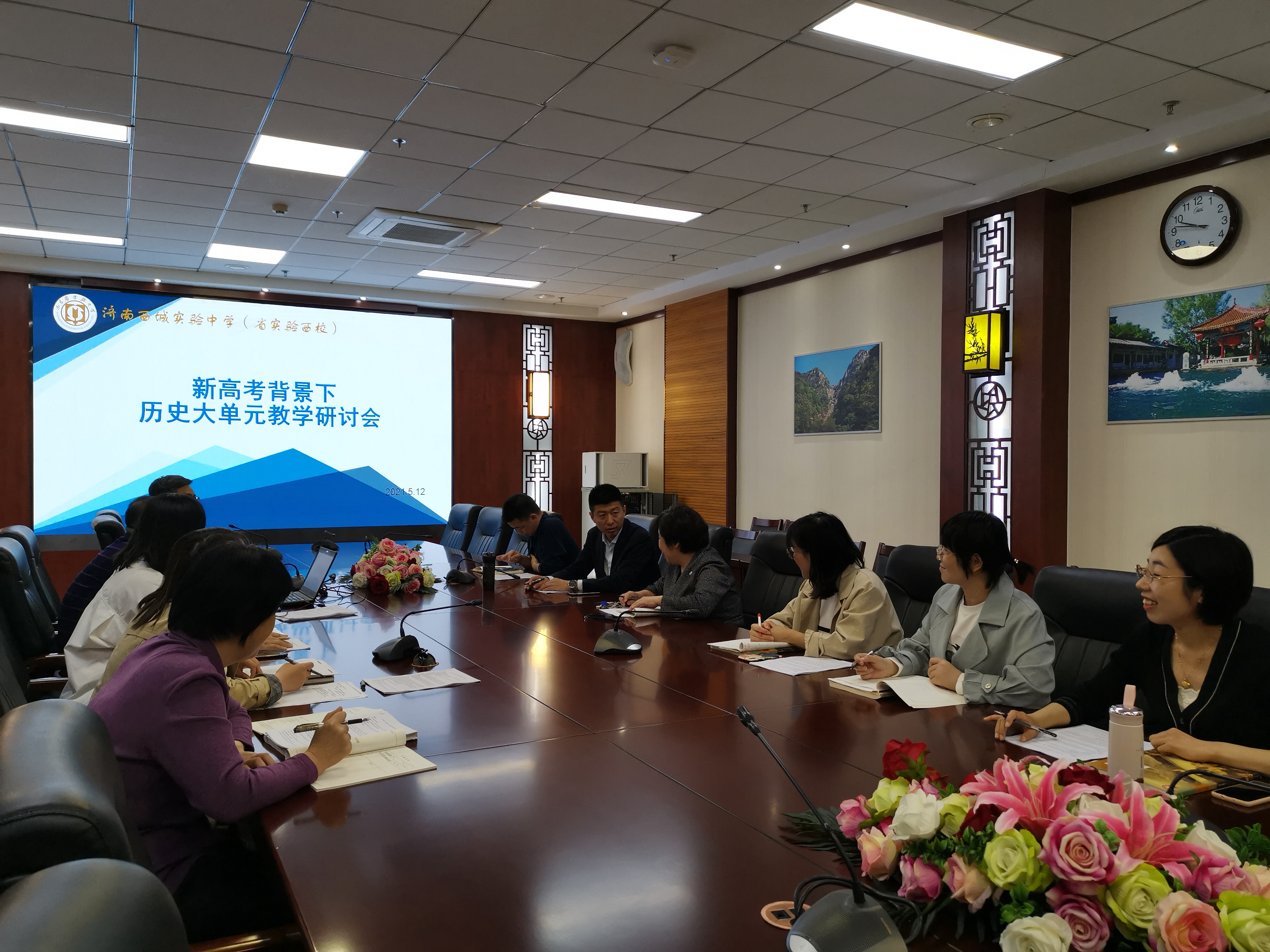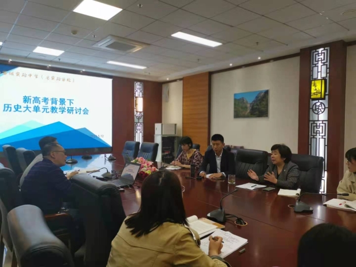 为备好新高考、用好新教材,实现学科核心素养在教育教学中的有效落地,提高新高考背景下教育教学质量,2021年5月12日上午,济南西城实验中学(山东省实验中学西校)历史组全体老师进行了新高考背景下历史大单元教学专题研讨,副校长钟红军,教导处主任陈鑫、副主任李长征和全体历史老师参加研讨。