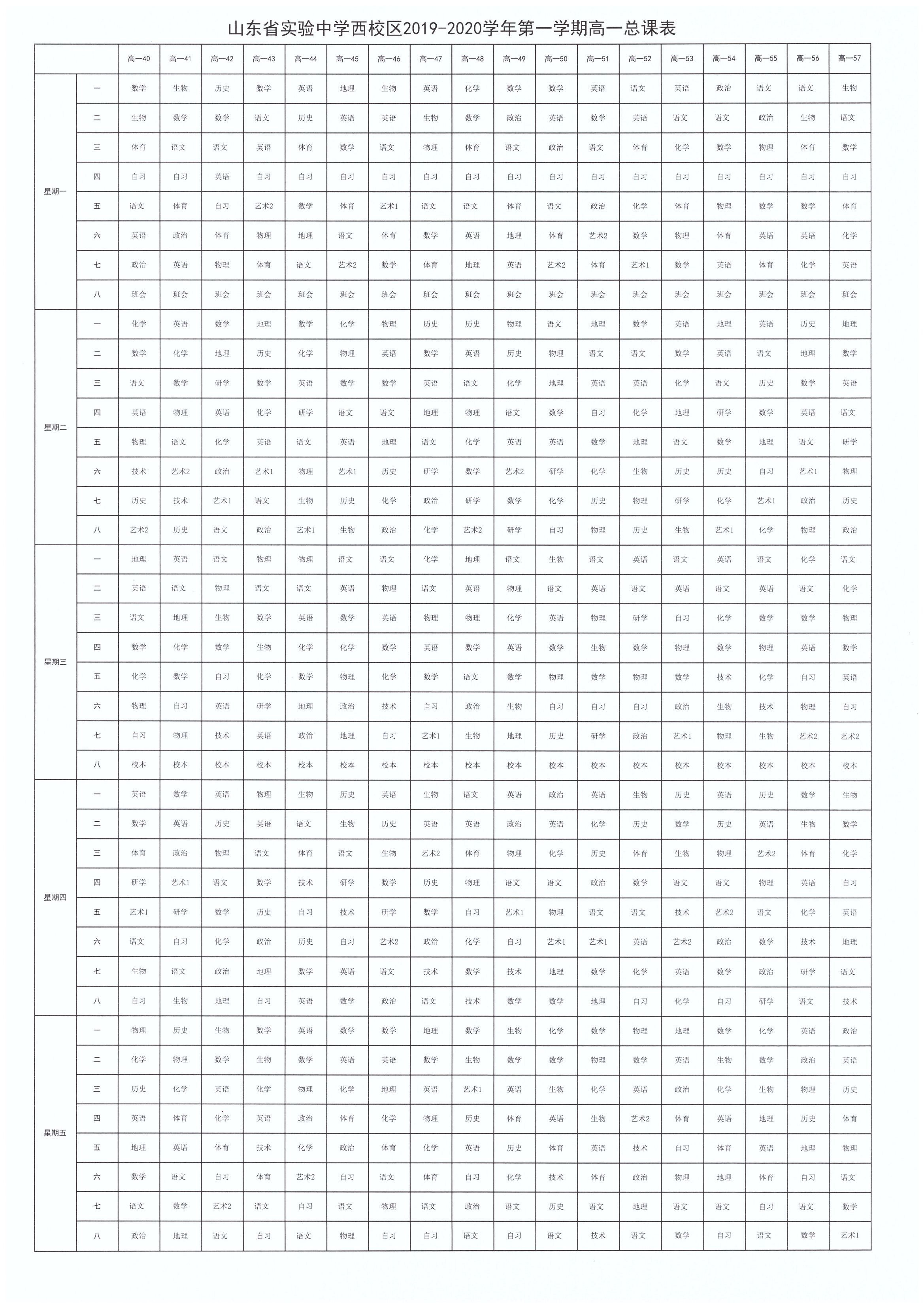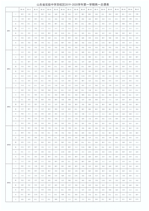 山东省实验中学西校2019-2020学年度第一学期高一年级课程安排表
