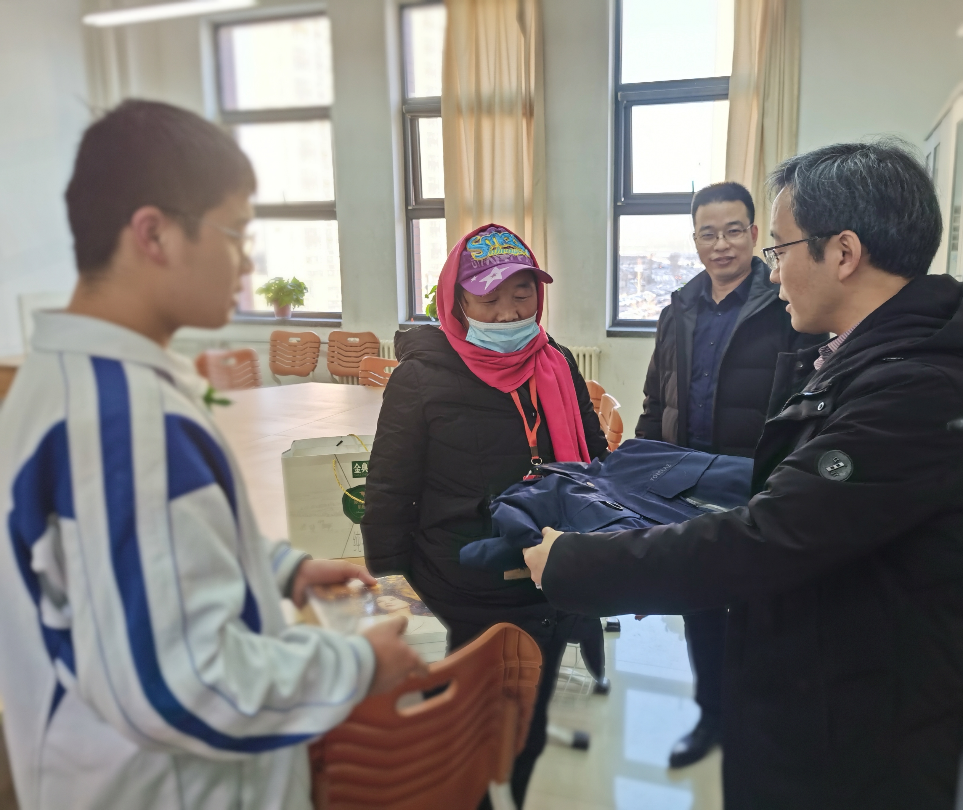 新年将至,天降寒雪。建档立卡等困难家庭学生情况如何,棉衣是否温暖,生活有无困难,始终牵挂在济南西城实验中学领导、老师的心头。近日,学校筹集6000余元专款,购置了棉衣、书籍、牛奶等物资,校长陆彩霞,校党委书记王蕾,副校长钟红军、张宏刚、张家鹏,分组、分批走访慰问了我校建档立卡等困难家庭学生,为他们送去了温暖爱心与精神鼓励。
