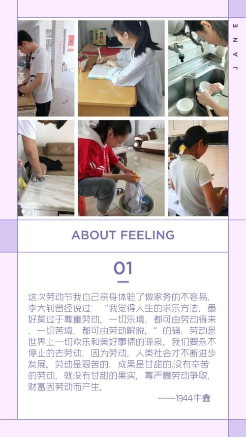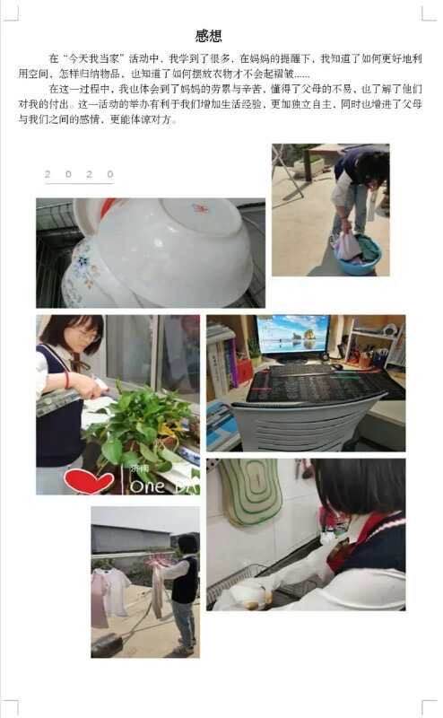 通过这次劳动教育活动,同学们加强了劳动技能并使家庭关系更加融洽。让我们谨记:劳动最光荣!在居家学习生活以及未来的学校生活中,积极参与劳动,做一个德智体美劳全面发展的新时代好青年!