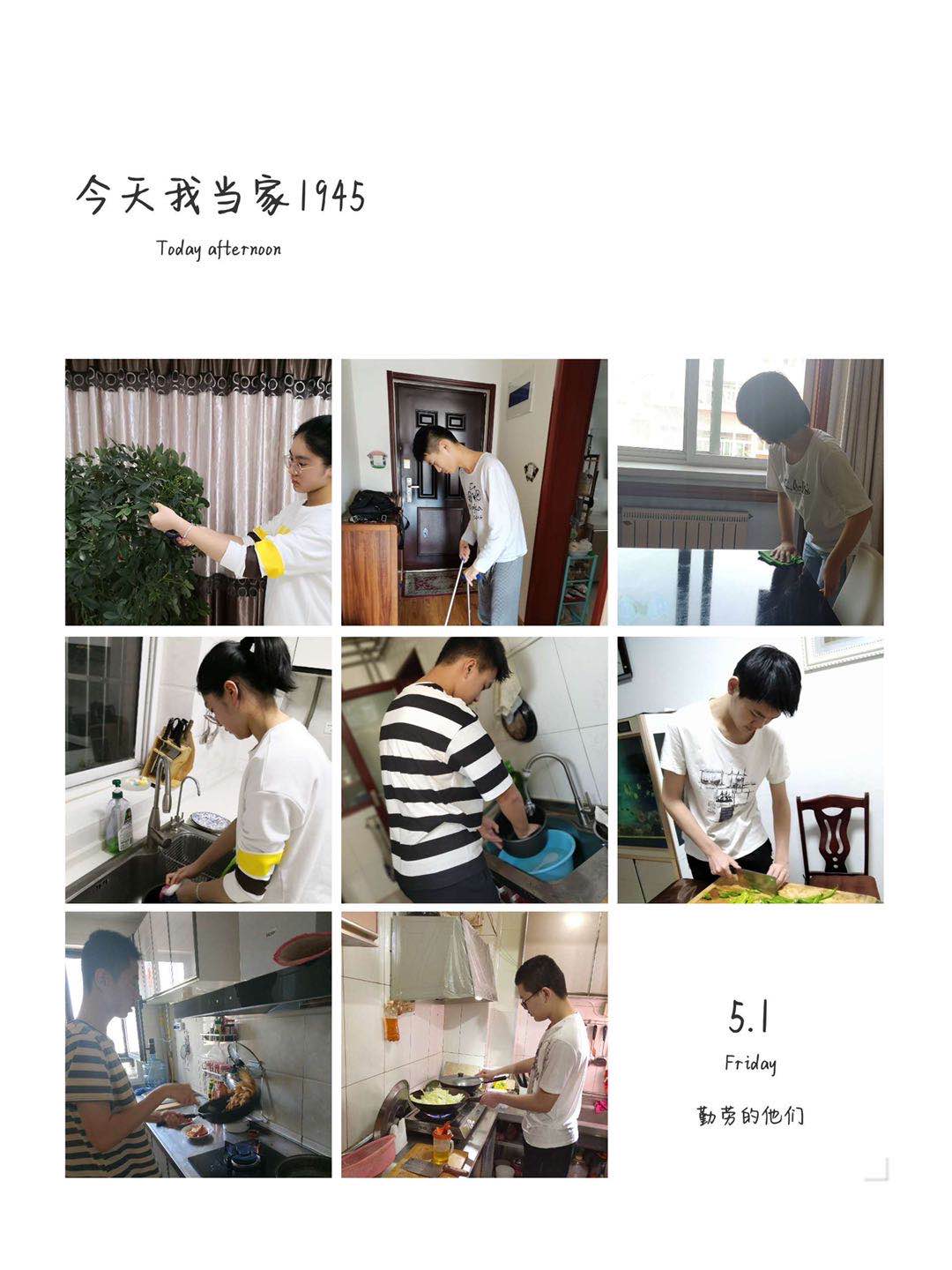 今年的五一劳动节无疑是不平凡的。今年年初,新冠肺炎病毒肆虐全球,14亿中华儿女守望相助,抵抗疫情。终于熬过寒冬,迎来暖春。随着方舱休舱,复工复产持续推进中,劳动者们都回已到岗位一如往常的辛勤工作。陶铸说:劳动是一切知识的源泉。而为了让同学们更加深刻的体会劳动的意义,山东省实验中学也开展了“五一劳动节,今天我当家”活动。2019级的同学们正在如火如荼地参与其中,展现实验学子的风采!