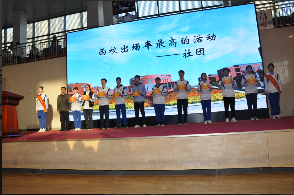 体育馆中,张宏刚副校长宣读了“十大优秀社团”的名单并为其颁奖。主持人宣布活动正式开始后,同学们热情高涨,奔向自己心仪的社团。高二的学长学姐们则在现场耐心讲解,帮助同学们选择社团。