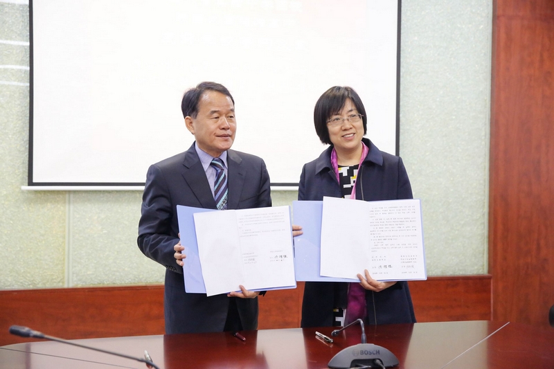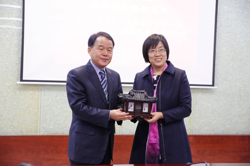Principal Lu Caixia gave a speech to introduce the details of the educational values and cases of our school. Principal Xu Lizhi responded with his gratitude, and the two schools reached a consensus on cultivating students' independent learning motivations and sense of qualified world citizens. Then the two sides solemnly held a signing ceremony after discussing and agreeing on the specific contents of the agreement. They exchanged gifts characteristic of each school’s education and containing the wish of "lighting the lamp of China-South Korea friendship.” After the signing ceremony, accompanied by the leaders of our school, the delegation of Suwon Meitan High School visited the campus, and they gave high recognition of the teaching facilities and managing concepts of our school.